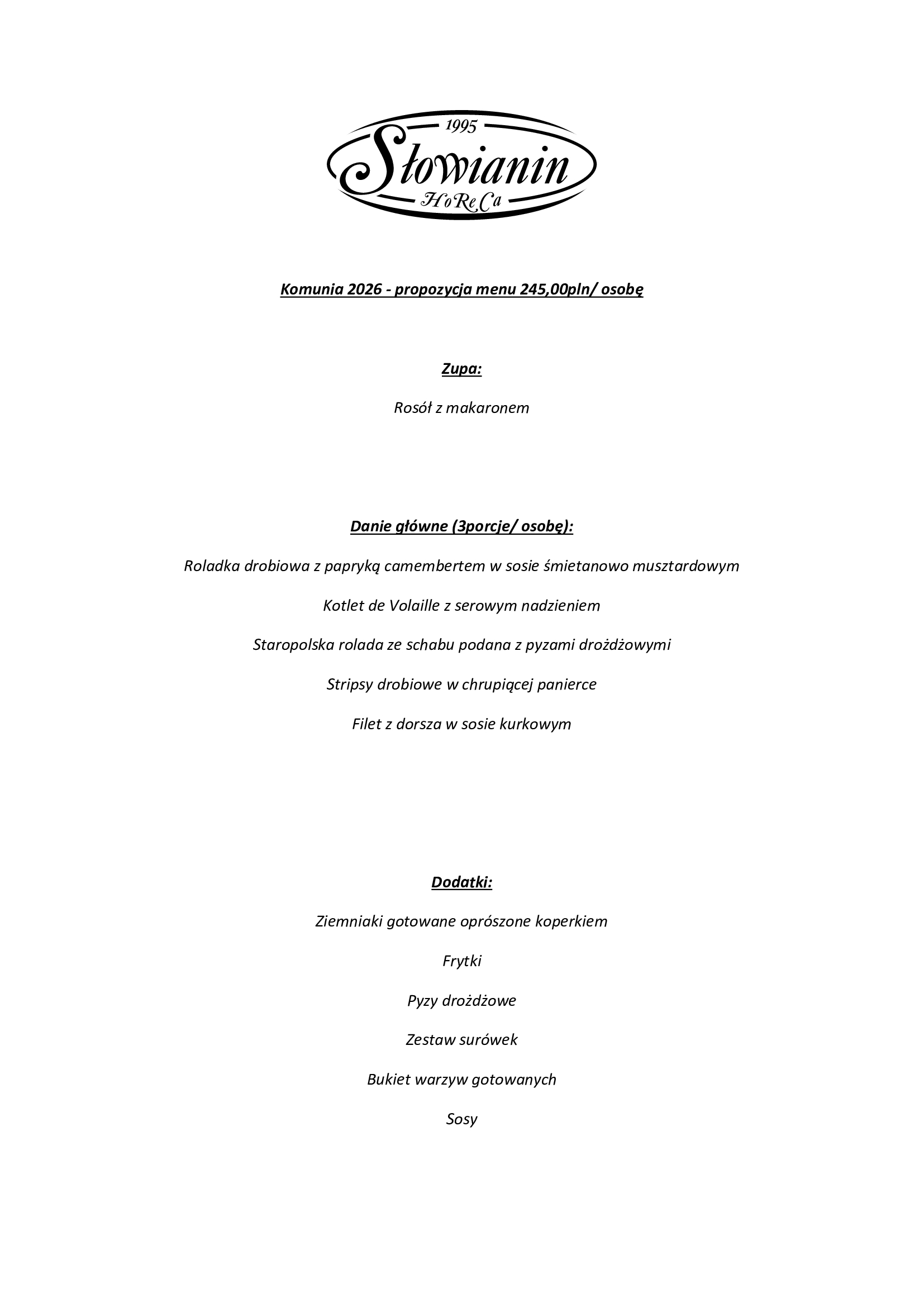 propozycja menu - 245,00pln / osobę