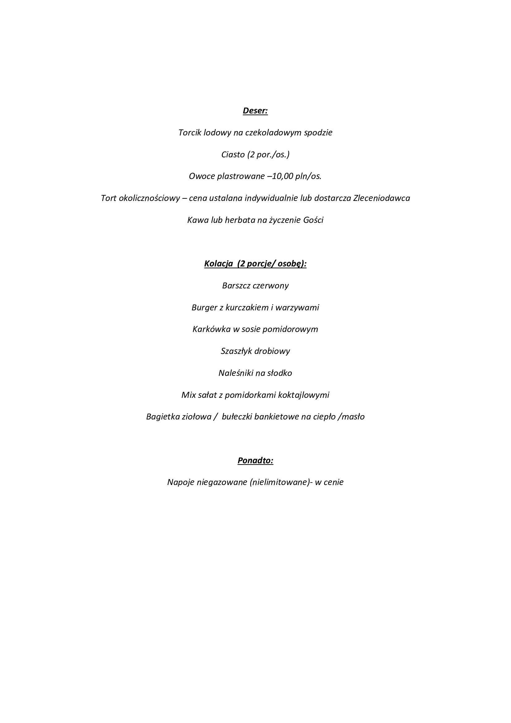 propozycja menu - 245,00pln / osobę